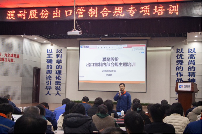 12月4日,濮耐股份出口管制合規(guī)專項(xiàng)培訓(xùn)在集團(tuán)A座五樓五號(hào)會(huì)議室隆重舉辦。本次培訓(xùn)旨在進(jìn)一步強(qiáng)化全員出口管制合規(guī)意識(shí),規(guī)范出口業(yè)務(wù)全流程操作,筑牢 公司依法 合規(guī)經(jīng)